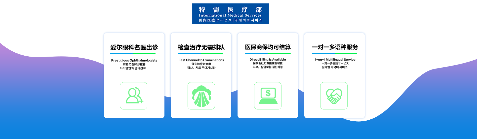 致力于為廣大旅居在上海的有包括支付方式、語(yǔ)言支持、疑難眼病等特需需求的國(guó)內(nèi)外客戶(hù)提供高品質(zhì)的眼科醫(yī)療、醫(yī)美服務(wù)。